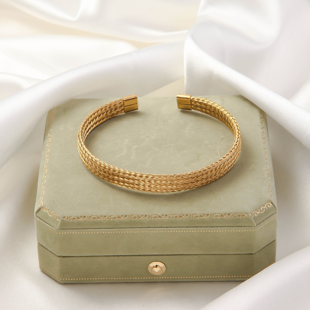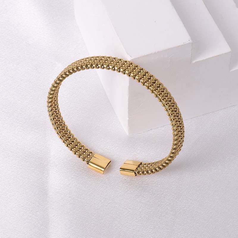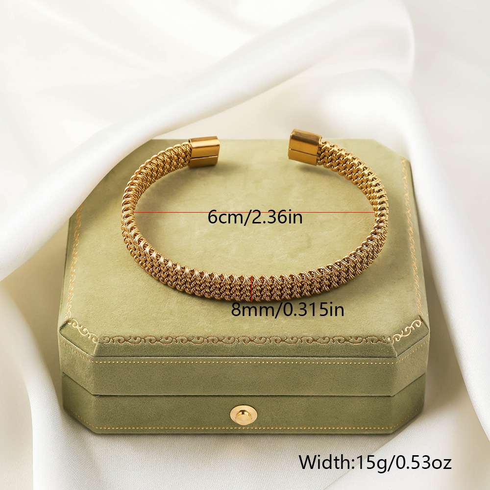 Irregular Knitted Cable-Design Open Womens Fashionable Stainless Steel Bracelet